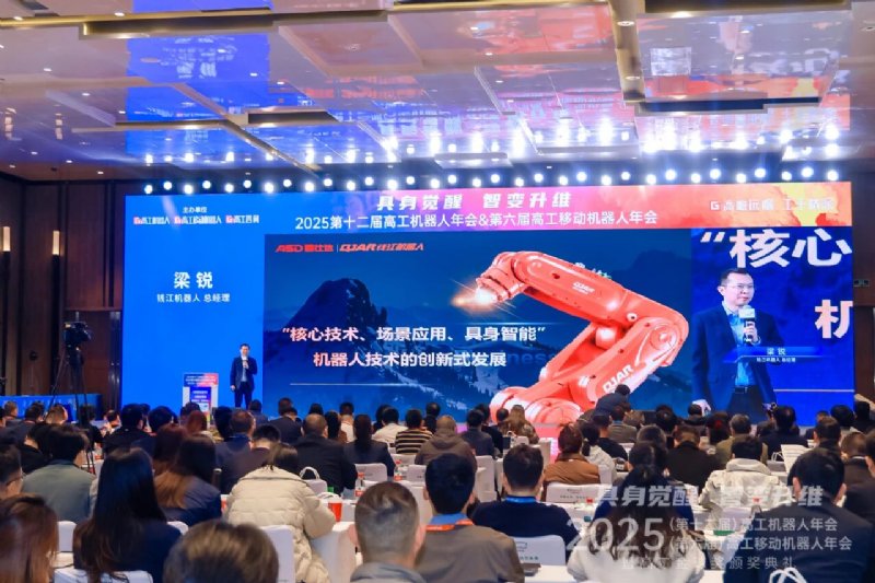 高工机器人年会作为中国机器人行业最具影响力的盛会之一,汇聚了产业上下游企业、专家学者及行业领袖,共同探讨技术创新、市场趋势与产业协作。在本届年会上,钱江机器人总经理梁锐围绕《“核心技术、场景应用、具身智能”机器人技术的创新式发展》进行主题分享。梁锐介绍,钱江机器人成立于2013年,由爱仕达股份控股,具有自主研发的减速机、控制系统及本体正向设计等核心技术并形成了产业优势。在产品方面,可提供负载从3KG至800KG标准的SCARA、6轴、4轴工业机器人,广泛应用于钢构、新能源、汽摩配、3C、五金、食品饮料等行业。当前,钱江机器人通过机器人技术+行业场景需求+AI智能,加速具身智能在工业场景中的落地实践。